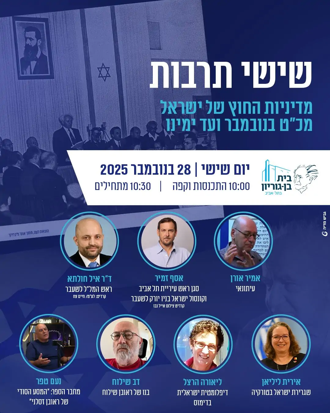 הזמנת שישי תרבות- "מכ"ט בנובמבר ועד יחסי החוץ של ישראל כיום"